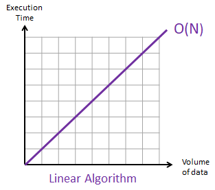 선형 시간(linear time) 알고리즘은 입력의 크기에 대비해 걸리는 시간을 그래프로 그렸을 때 정확히 직선이 되는 알고리즘을 말한다. 대개 우리가 찾을 수 있는 알고리즘 중 가장 좋은 알고리즘인 경우가 많다. 주어진 입력 N개를 최소한 한 번씩 쳐다보기라도 하려면 최소한 N번이 필요하니까.