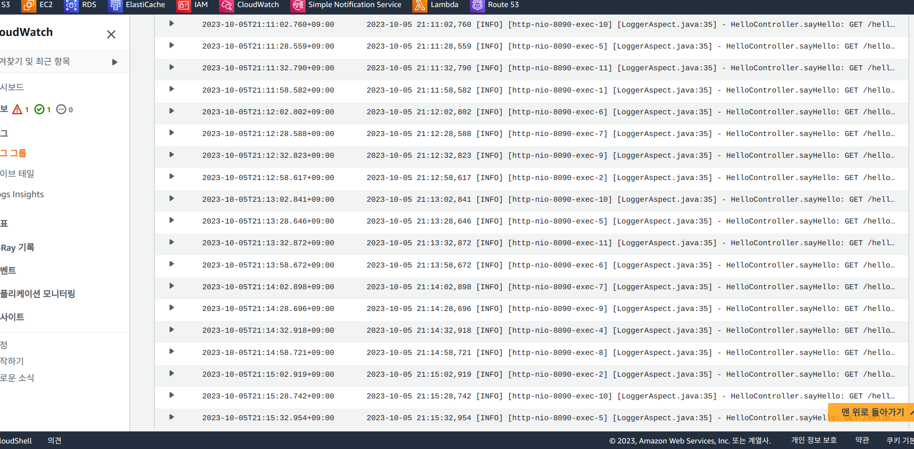 CloudWatch에서 서버 요청 로그를 확인했다.