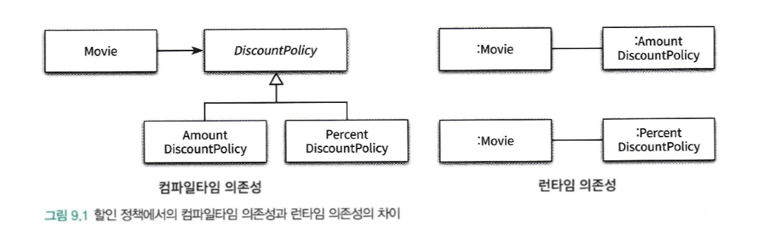 Movie는 인터페이스인 DiscountPolicy에 의존하기 때문에, 자식 클래스로 OverlappedDiscountPolicy 클래스를 추가하더라도 기존의 코드(Movie, DiscountPolicy, AmountDiscountPolicy, PercentDiscountPolicy)는 변하지 않는다.