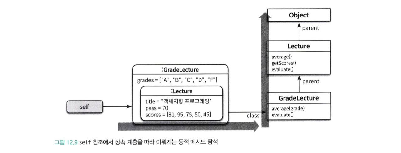 행동 관점에서 상속과 다형성의 기본적인 개념을 이해하기 위해서는 상속 관계로 연결된 클래스 사이의 메서드 탐색 과정을 이해하는 것이 가장 중요하다.